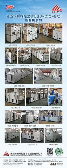 無錫市聯(lián)眾控濕節(jié)能設備有限公司成立于2004年2月,是一家長期致力于把空氣吸附分離技術應用于空氣處理設備的科技型中外合作 企業(yè),主要研發(fā)生產(chǎn)轉輪除濕機組、熱泵除濕機組、空氣與空氣熱 能交換回收機組、蒸發(fā)冷卻空調(diào)機組、有機廢氣凈化處理機組等非 標空氣處理設備。隨著生產(chǎn)規(guī)模的不斷壯大和產(chǎn)業(yè)化的精細分工, 聯(lián)眾公司與2011年10月在江蘇省宜興市萬石鎮(zhèn)工業(yè)園茶亭路8號, 一期投資5000萬元,置地25畝、建標準工業(yè)廠房10000平方米和辦 公樓3000平方米,重新注冊成立江蘇聯(lián)眾聯(lián)勝節(jié)能設備有限公司。 企業(yè)領導層決定確立江蘇聯(lián)眾聯(lián)勝公司以研發(fā)生產(chǎn)蒸發(fā)冷卻空調(diào)機 組、有機廢氣凈化處理機組等大型節(jié)能環(huán)保空氣處理設備為主;而無錫聯(lián)眾控濕公司則在無錫繼續(xù)以研發(fā)生產(chǎn)轉輪除濕機組、熱泵除濕機組、空氣與空氣熱交器為主。在國內(nèi)暖通空調(diào)工程領域,聯(lián)眾控濕公司研發(fā)各類轉輪除濕機的技術能力、生產(chǎn)各類轉輪除濕機的 裝備制造工藝水平處于本行業(yè)前沿。